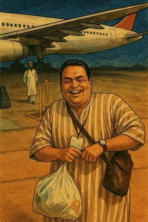 اب کی بار کوئی اور ٹیکنیکل فالٹ آ گیا۔ جہاز پھر واپس آ گیا۔ خرابی دور کی گئی۔ اس بار پائلٹ نے سب کو حیران کر دینے والا اعلان کیا: "میں قسم کھا کر کہتا ہوں کہ جہاز عامر قذافی کے بغیر نہیں اُڑے گا۔اس اعلان کے بعد عامر کو فوری طور پر کلیئر کیا گیا اور آخرکار طیارہ عامر کے ساتھ اپنی منزل کی جانب روانہ ہوا۔ جہاز سر زمین حجاز لینڈ کیا۔ بغیر کسی خرابی کے ۔